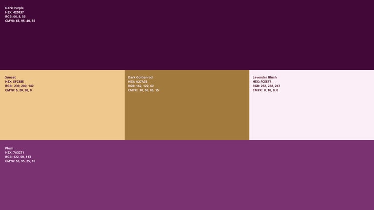 A paleta de cores foi escolhida para comunicar elegância e calor. Tons profundos inspirados no universo floral se unem ao dourado, que reforça o caráter refinado da marca, trazendo brilho na medida exata.